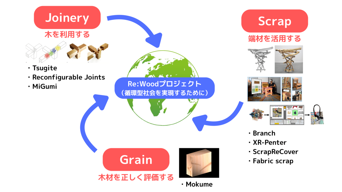 ▶︎Tsugiteの話を中心にしましたが、TsugiteはRe:woodプロジェクトという大きな枠のなかのひとつですよね。Re:woodプロジェクトでは、ほかにどのような研究をされているのでしょうか。