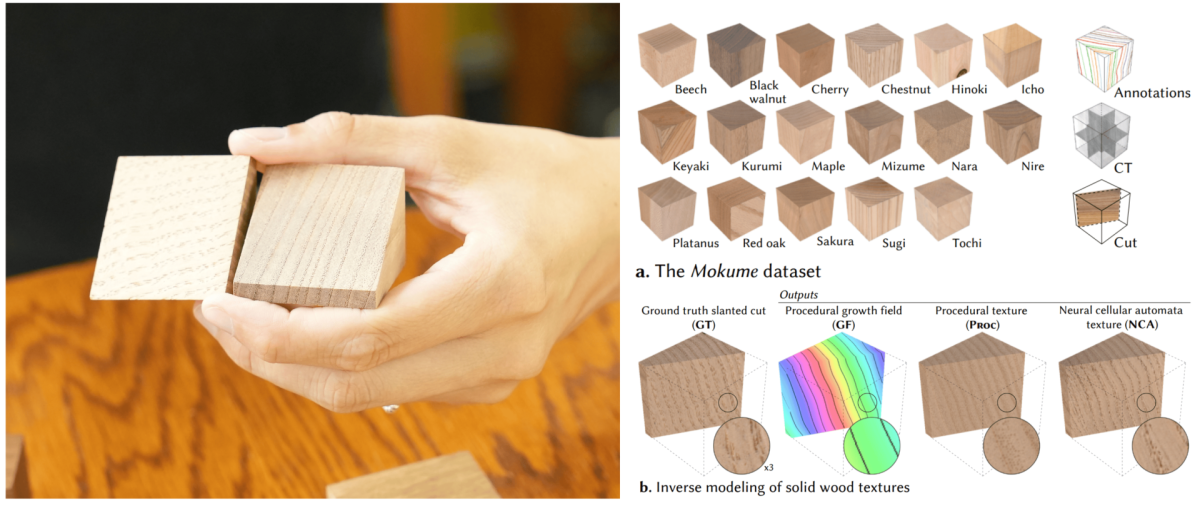 「Mokume」は、写真の木目の状態から、内部にどのように木目が入っているかを予測できるようなソフトです。内部の木目の状態が予測できれば木を組み合わせる時や材料として使用する時、使える箇所の調整がしやすくなります。