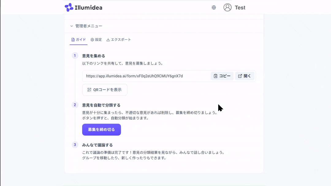 ▶︎集まった意見を分類、整理してくれる機能がついた目安箱と考えると良いでしょうか。