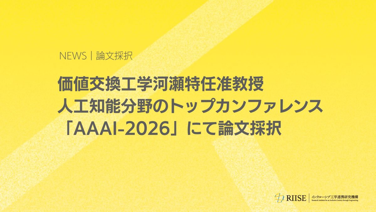 The Research Institute for an Inclusive Society through Engineering (RIISE) at the University of Tokyo is proud to announce that a research paper by Project Associate Professor Yasushi Kawase and his team has been accepted for the Main Technical Track at AAAI-26 (Annual AAAI Conference on Artificial Intelligence).